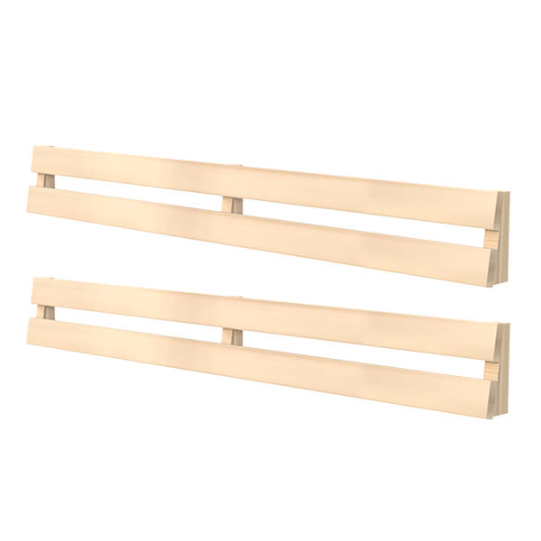 Le dossier de sauna est une grille en bois avec une courbure orthopédique spéciale, fixée au mur. Grâce à cette conception, une personne assise peut toujours s’appuyer sur le mur, même lorsque la température à l’intérieur est très élevée.
